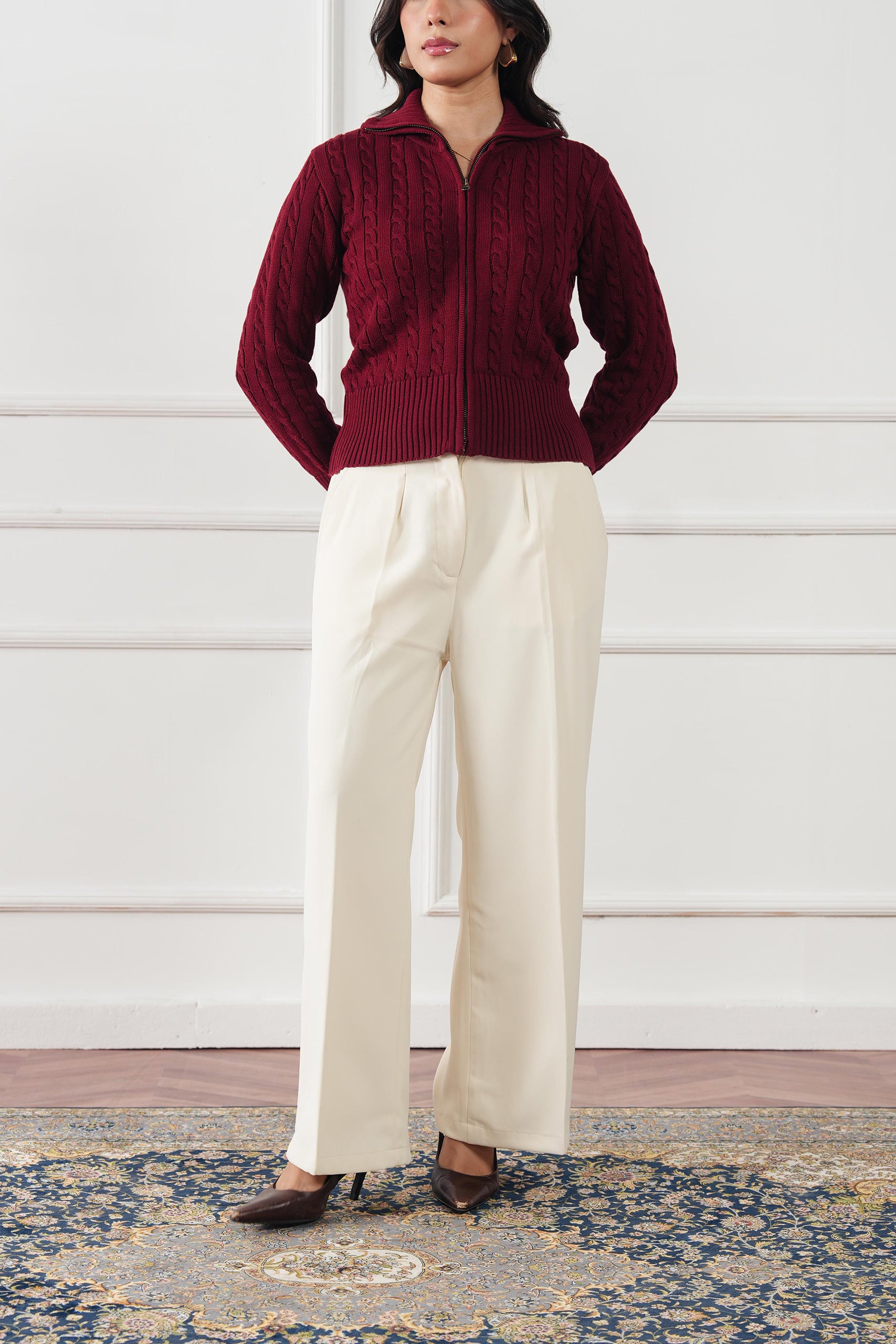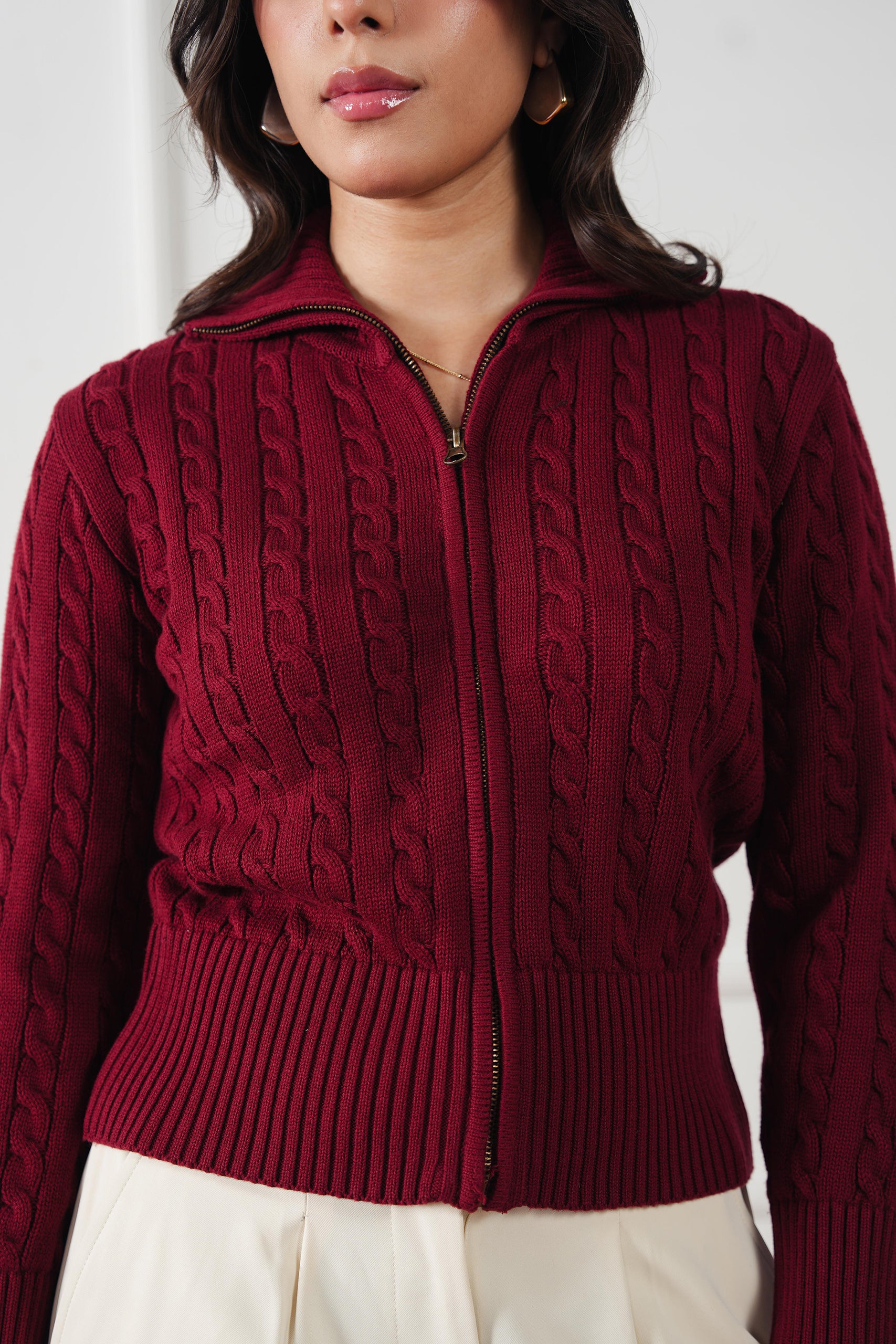 Effortlessly refined and timeless, the Cable Knit Zip Sweater brings a touch of classic sophistication to your fall and winter wardrobe. Crafted from premium cotton yarn knitted fabric, it offers a soft, structured feel with a flattering silhouette — perfect for layering or wearing on its own for an elevated casual look.