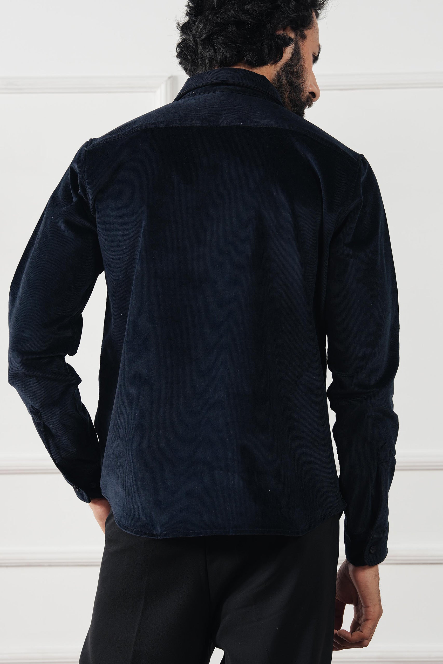 A plush, fine-wale corduroy overshirt with an effortless drape—designed to layer over knits or tees and polished enough to button up on its own. Quietly luxe, comfortably warm, and made for fall–winter ease.