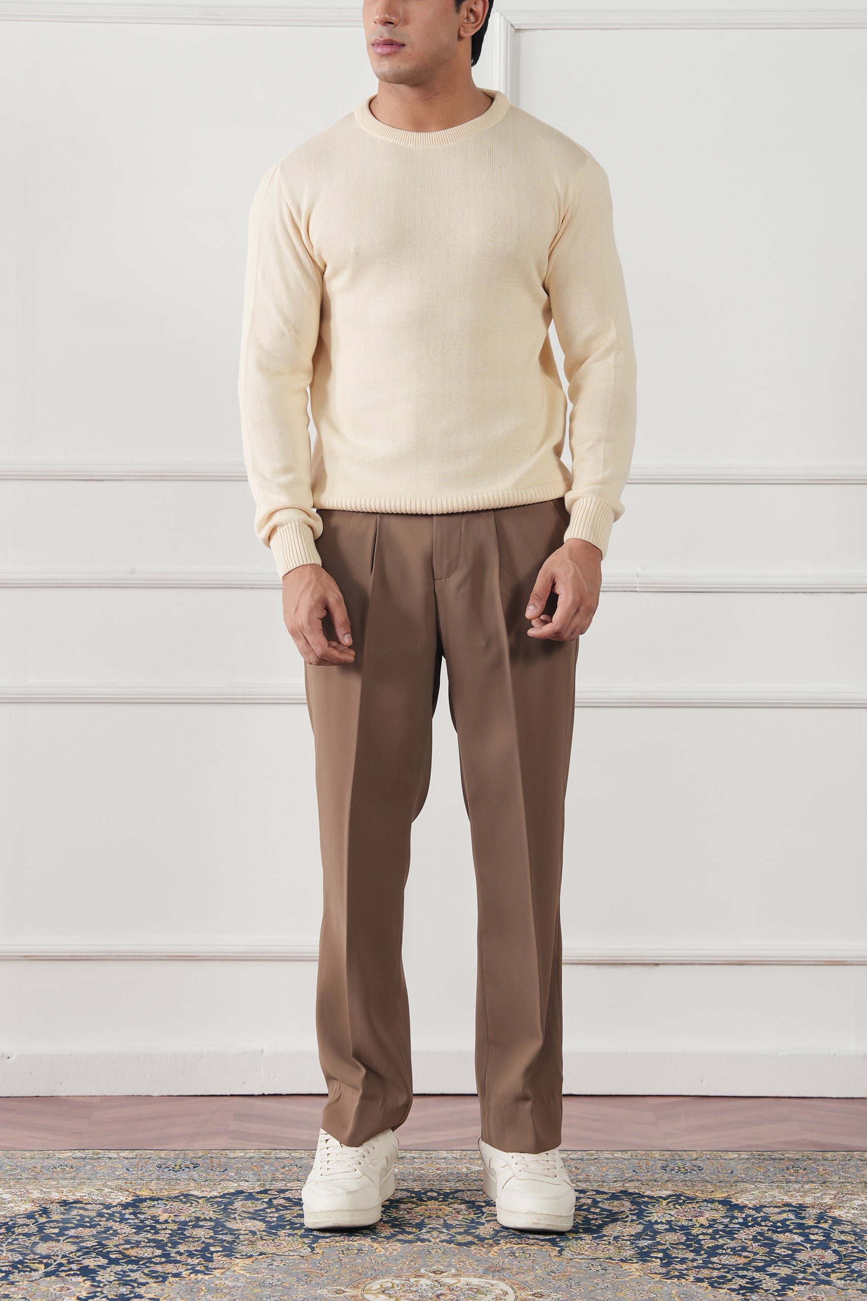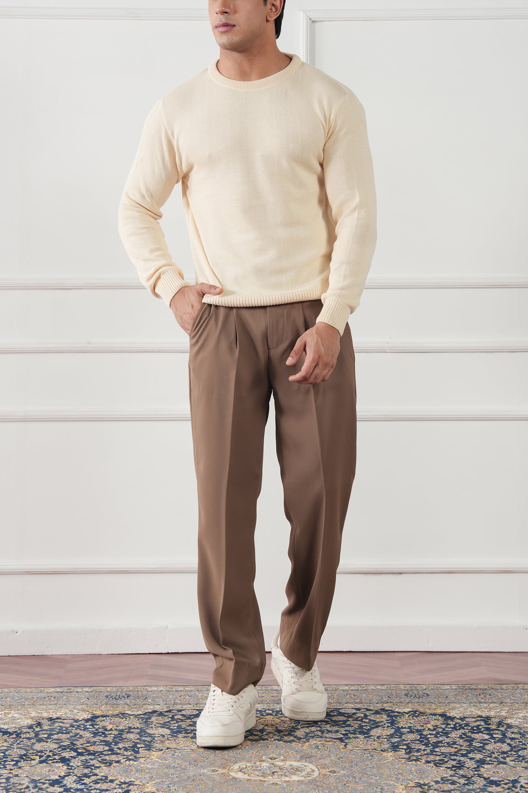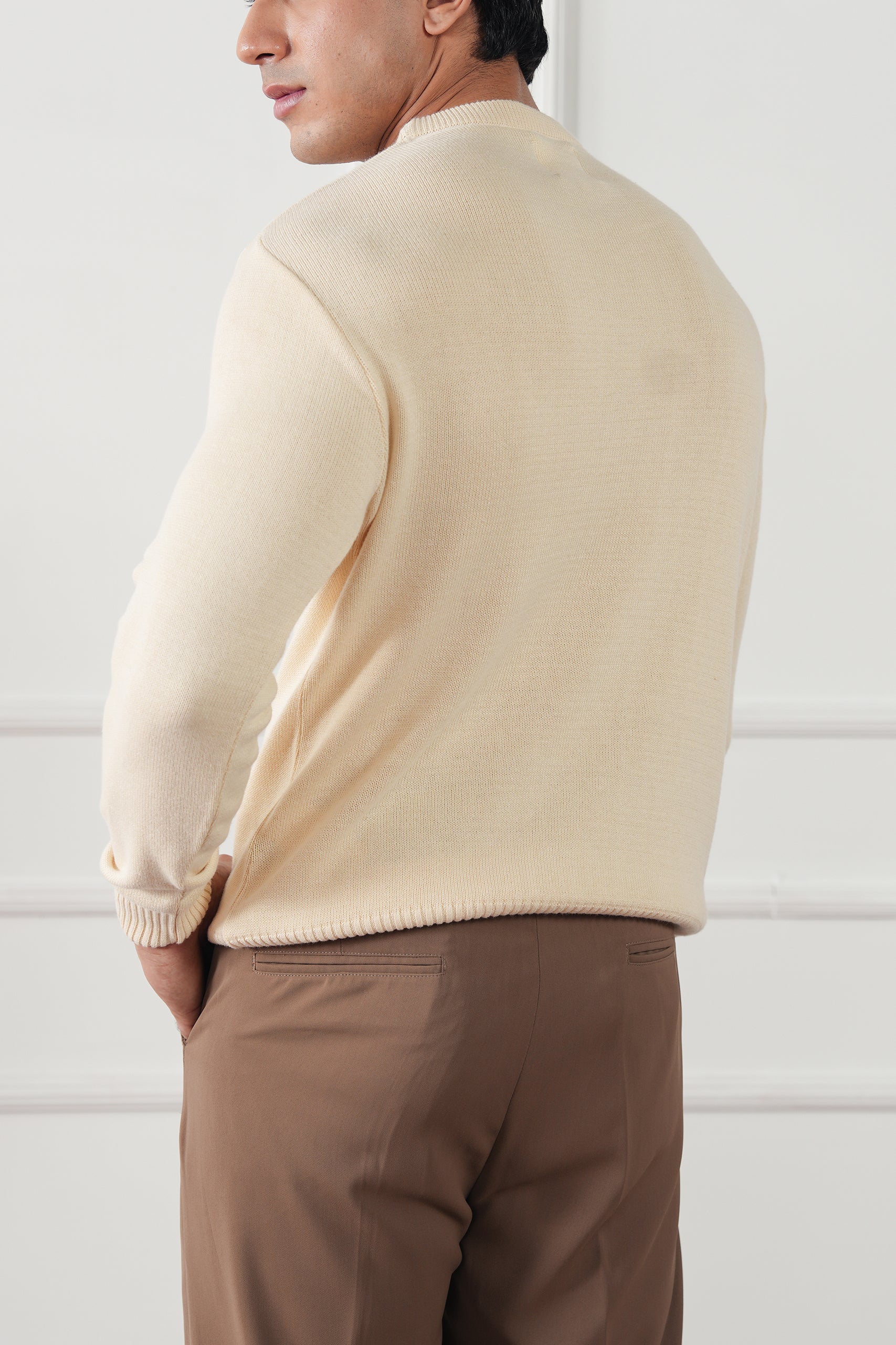 An essential piece for refined simplicity, the Crew Neck Knit Sweater is crafted from 100% cotton knitted yarn for a soft, breathable, and naturally insulating feel. Designed for effortless layering, it offers a clean silhouette that transitions seamlessly from casual weekends to polished evenings.
