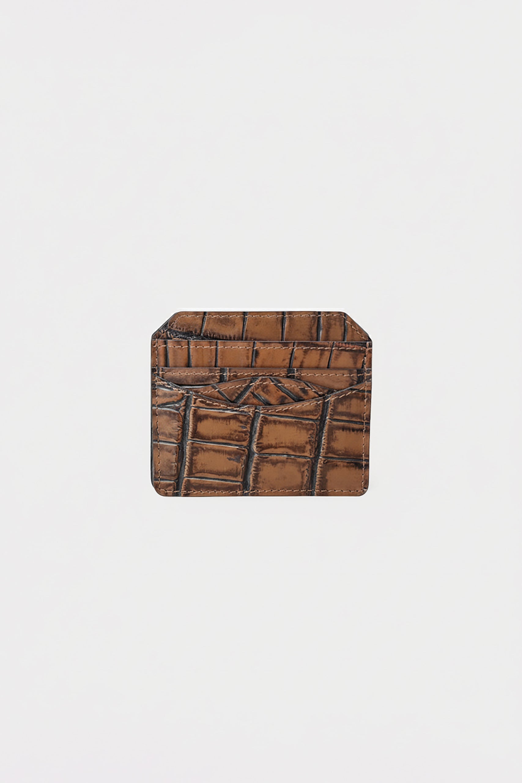 An elegant nod to timeless tailoring, the Croc Textured Leather Cardholder pairs a refined croc texture with a sleek, pocket-perfect profile. The silk-lined interior and sculpted top corners speak to quiet luxury, while thoughtful organization keeps every essential precisely in place.