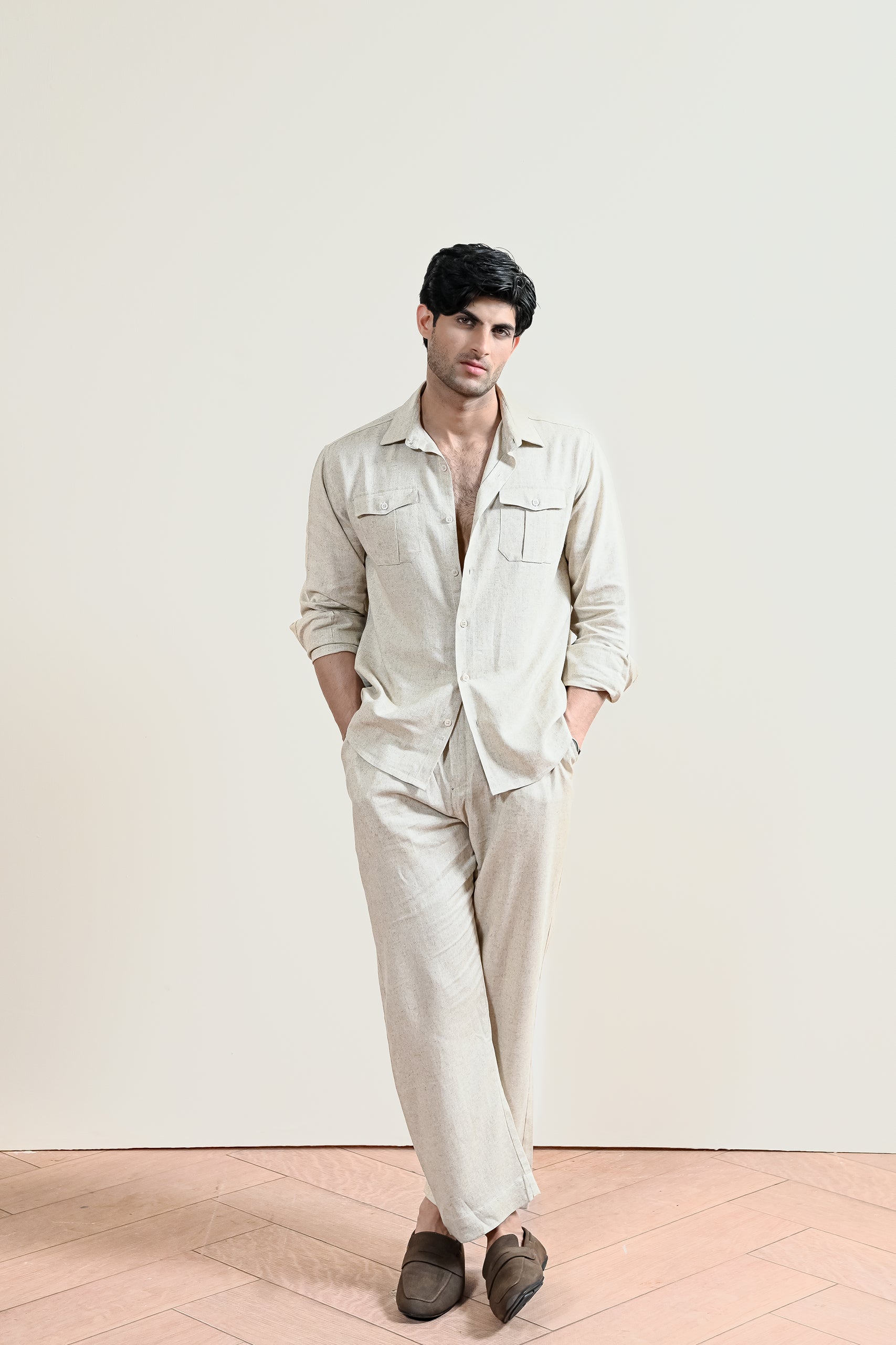 The Heritage Double Pocket Linen Shirt delivers a clean, work-inspired silhouette refined for everyday wear. Crafted from breathable linen, it features a structured collar and twin flap chest pockets that bring subtle character while maintaining a sharp, balanced profile. The naturally textured shirt drapes easily on the body—making it a dependable choice for daily wear, warm-weather travel, and polished casual styling.