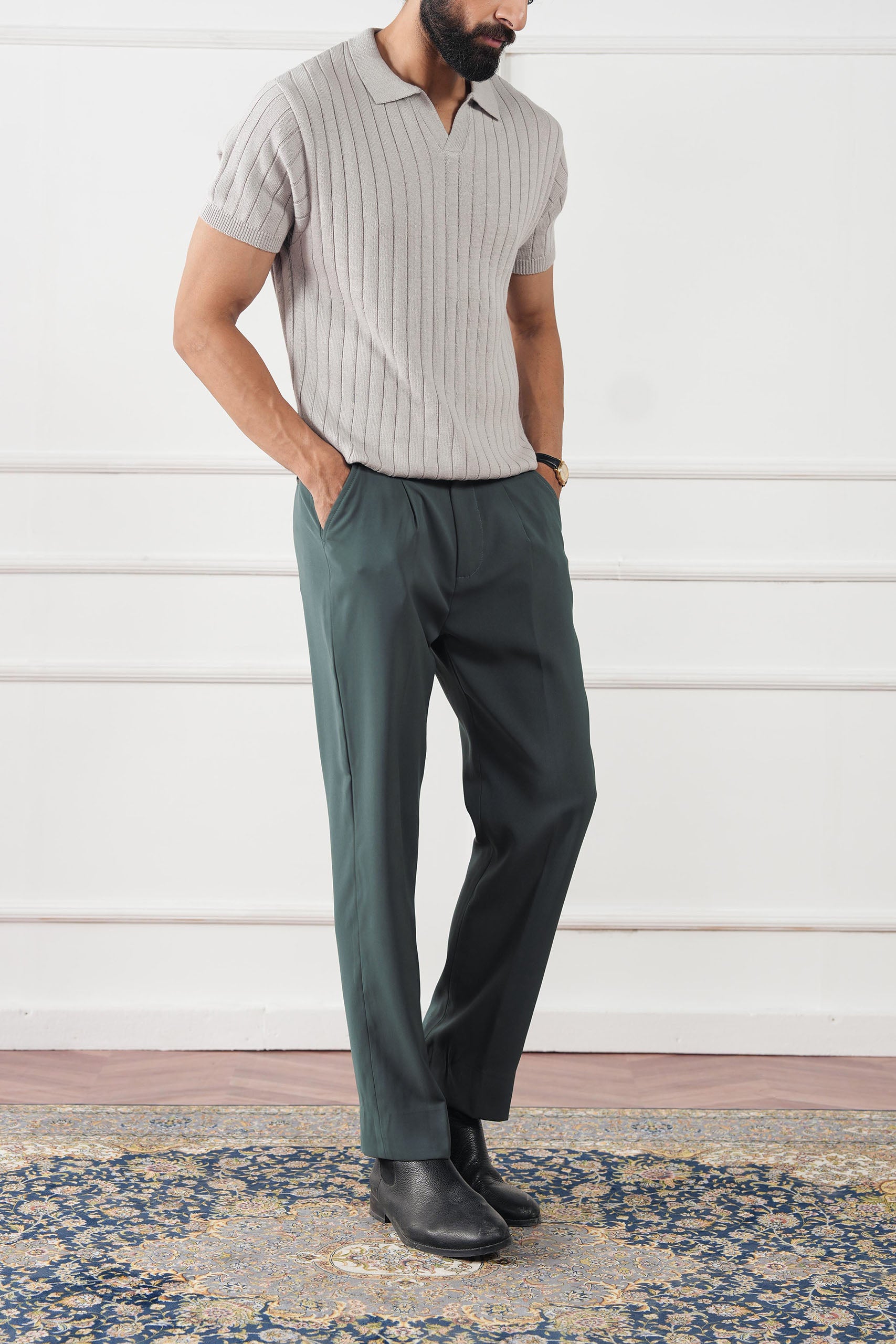 - Front pleats for a refined tailored silhouette