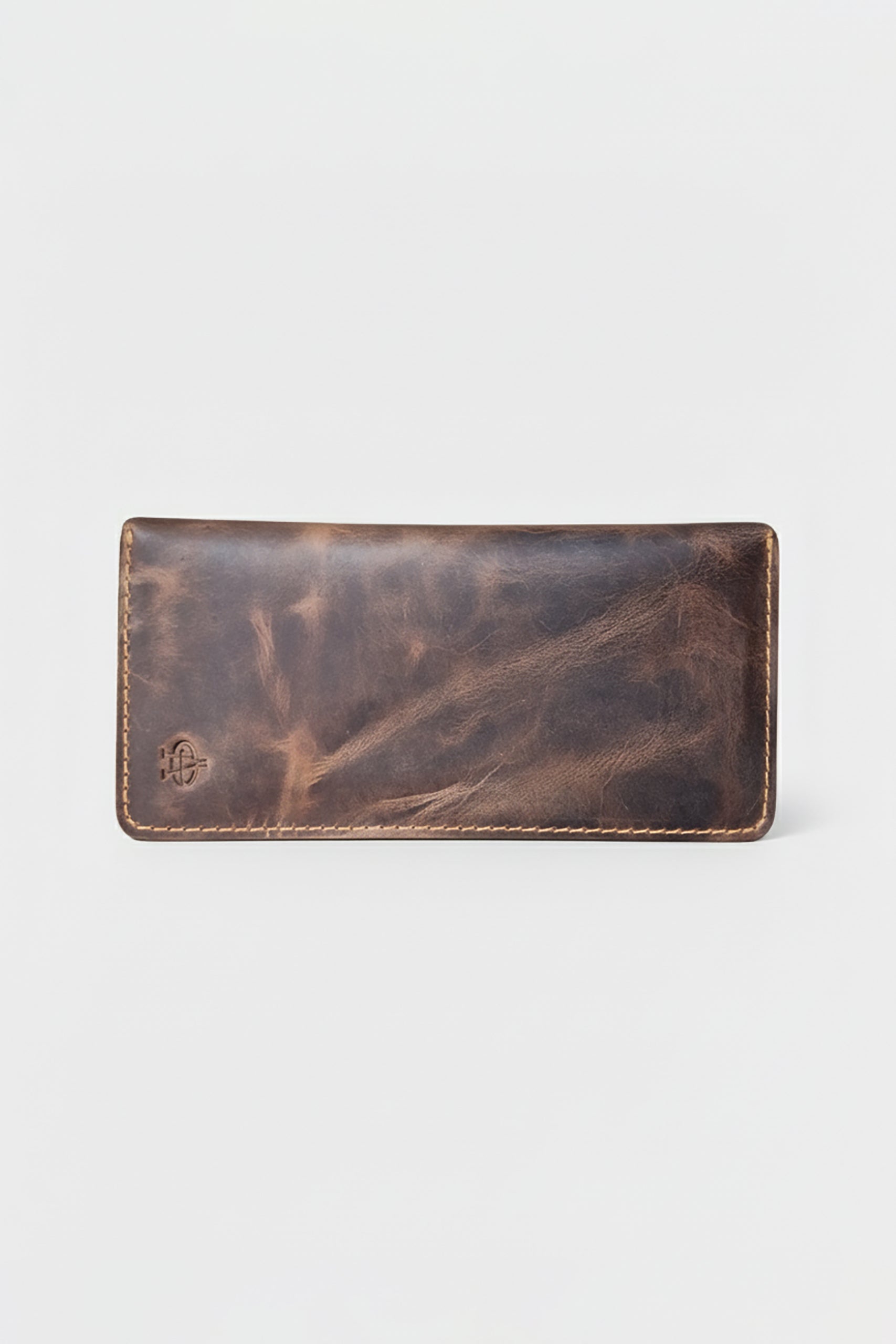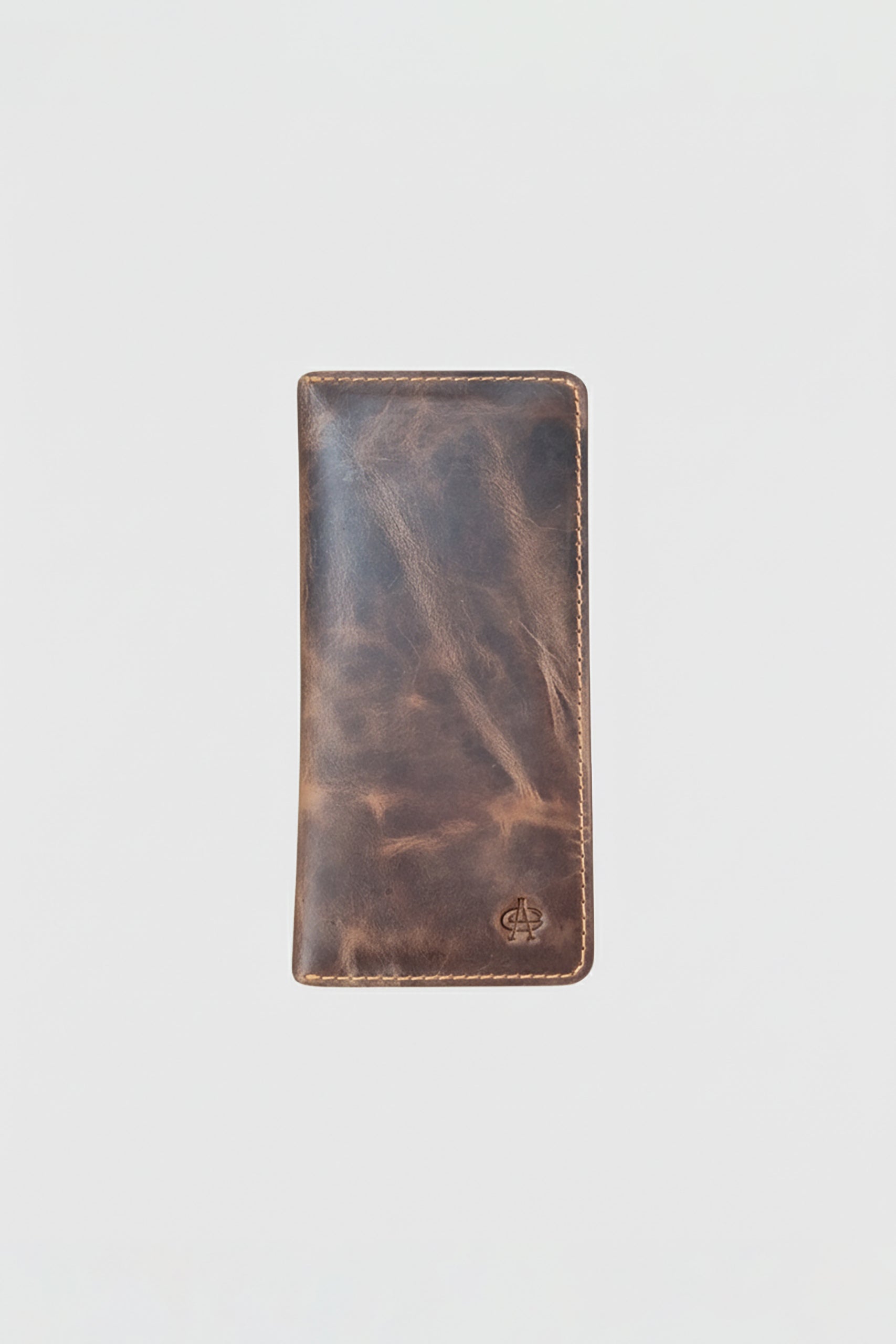 A study in refined ruggedness, this is cut from pull-up cow leather that softens and burnishes with every season. Its tall, tailored silhouette slips neatly into an inside pocket, while the thoughtfully arranged interior keeps daily essentials in elegant order—quietly luxurious and built to age beautifully.