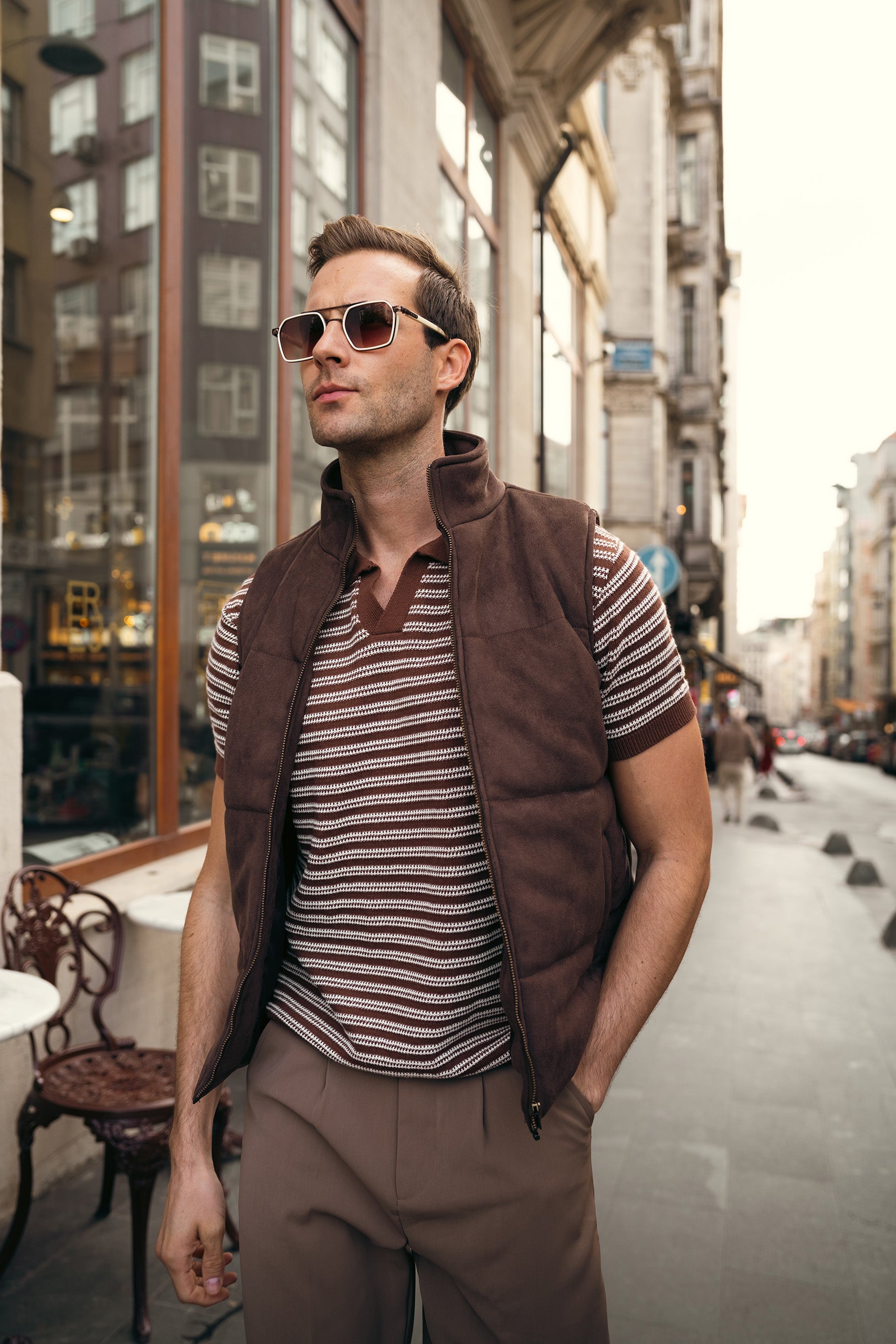 The Quilted Suede Gilet captures a balance of rugged refinement and understated luxury. Designed for the colder months, it’s crafted from high-quality faux suede with a rich, velvety texture that adds depth to any winter ensemble. Lightly quilted for warmth without the bulk, it layers effortlessly over shirts or sweaters for an elegant yet relaxed silhouette.