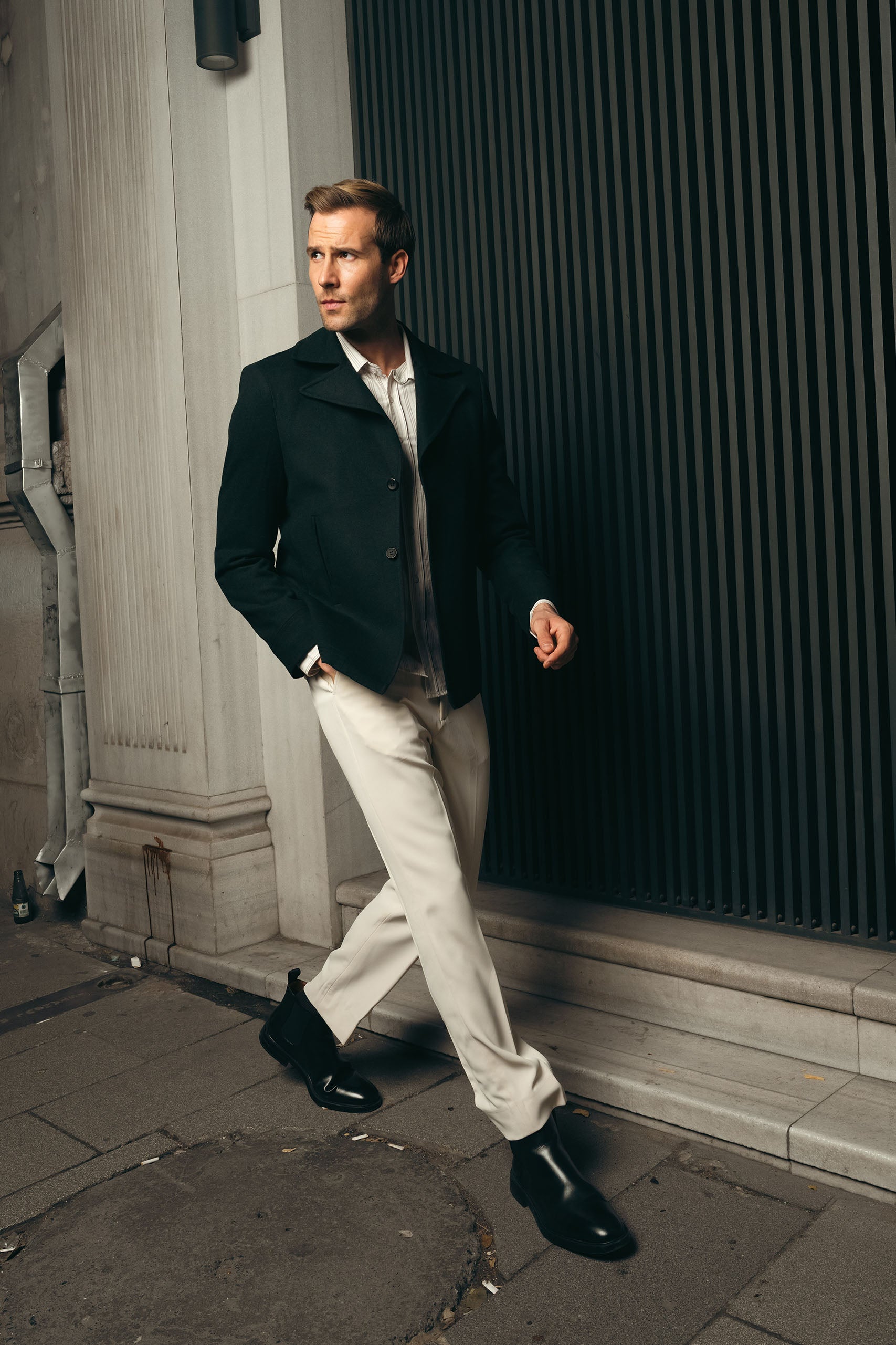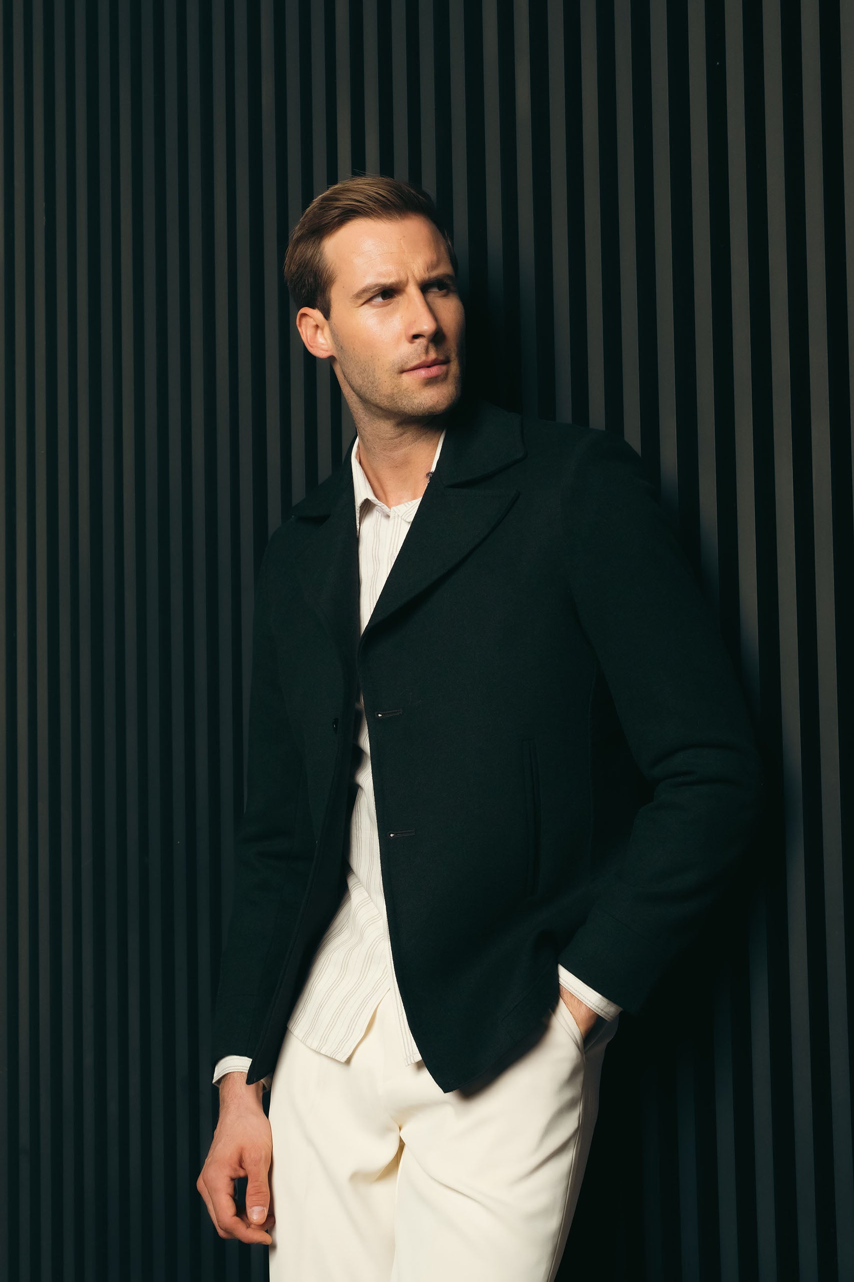 The garment excels through its sophisticated aesthetic, high-quality making and usage of material, with exceptional versatility for professional and formal settings.