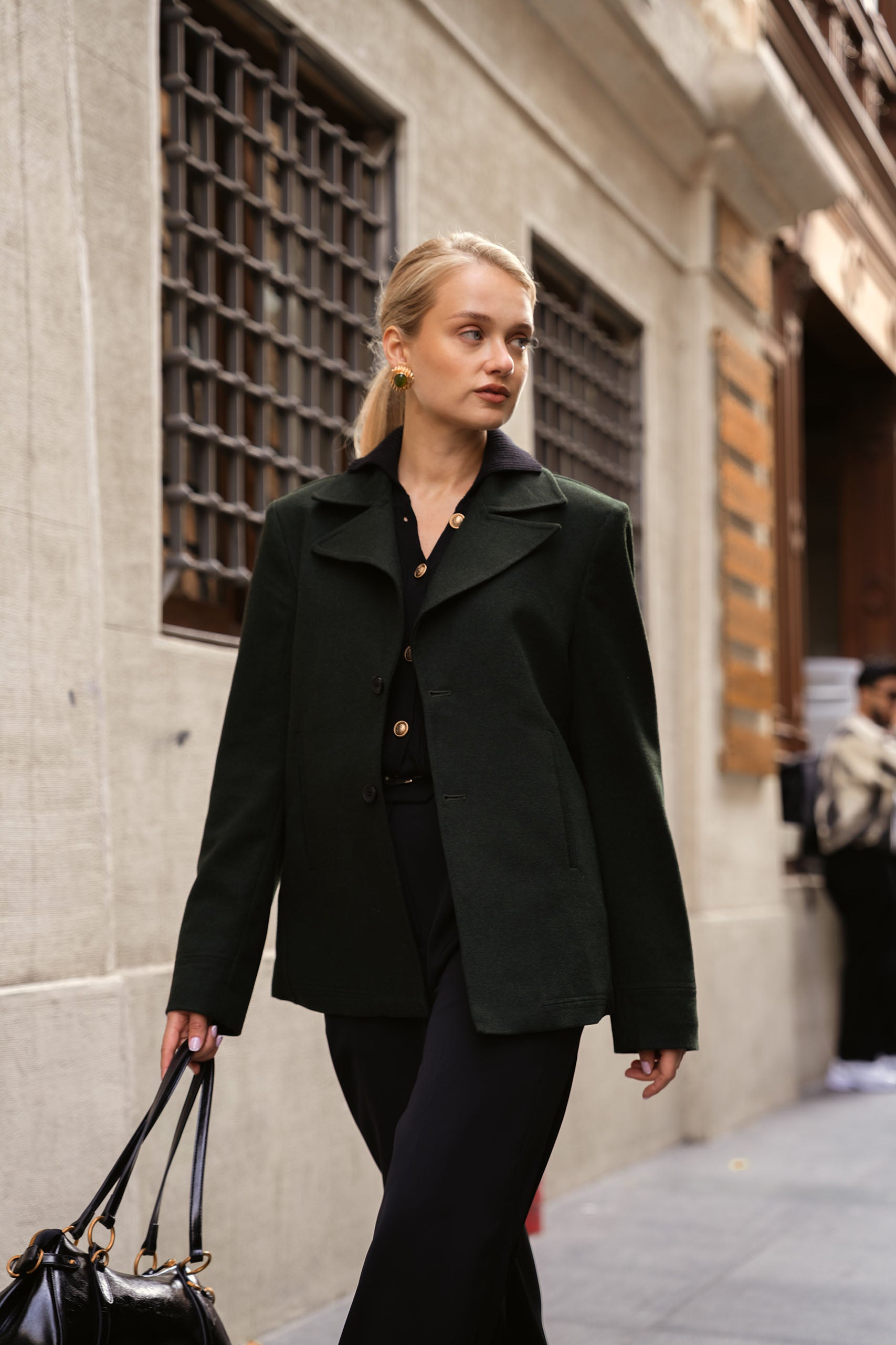 Tailored with a refined silhouette and cropped length, the Riviera Wool Coat blends timeless sophistication with modern ease. Designed for fall and winter layering, it features structured shoulders, peak lapels, and a smooth inner lining—perfect for both elevated evenings and everyday polish.
