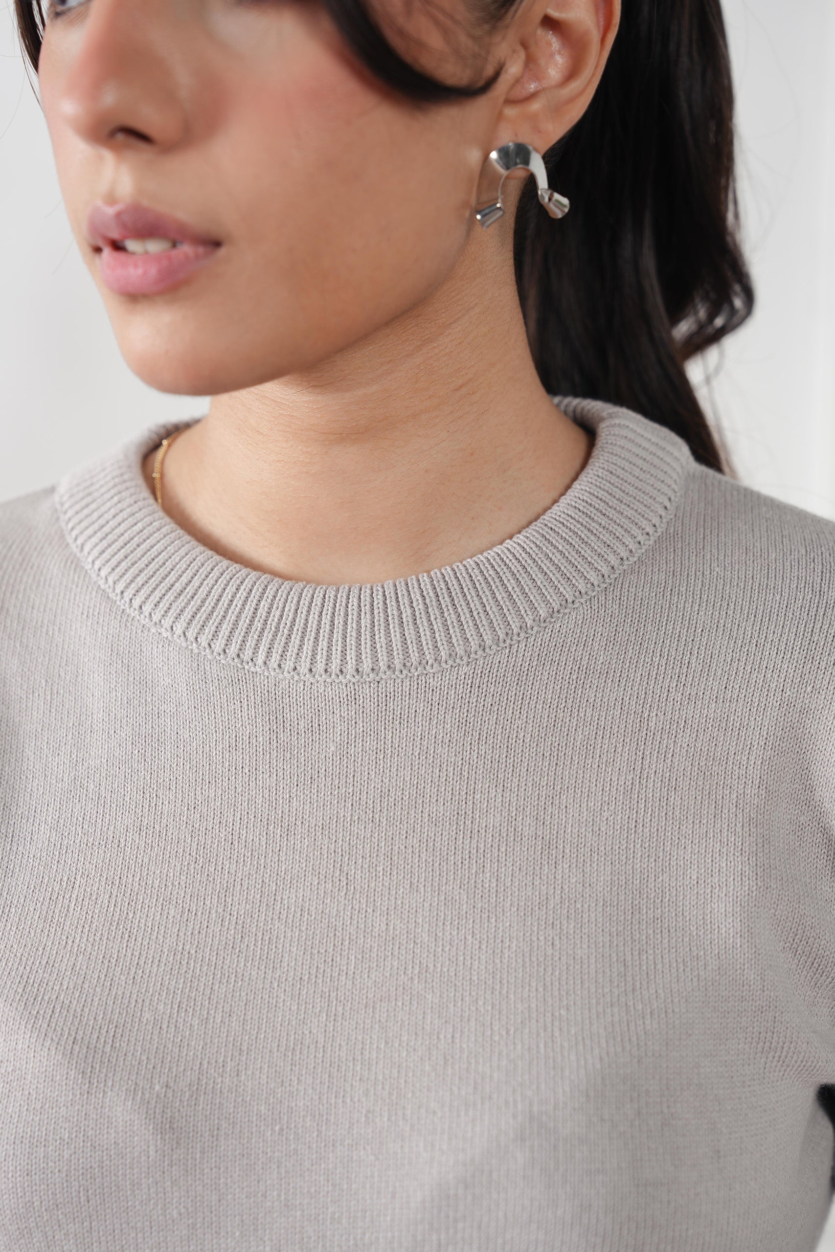 A symbol of refined ease, the Round Neck Knit Sweater is crafted in a smooth cotton yarn knit that embodies understated sophistication. With its clean silhouette and soft hand feel, it offers timeless comfort for cooler months. Pair it with the matching knit trouser for a complete and effortlessly polished look.