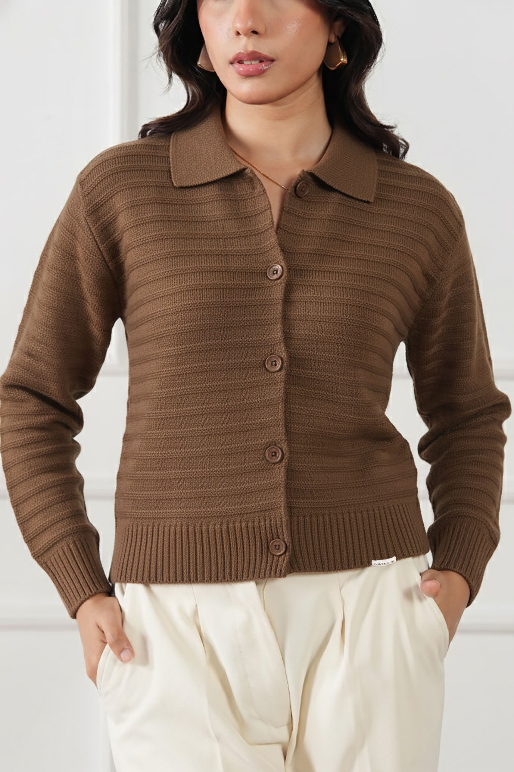- Shirt-style collar and button front for a refined, cardigan-meets-shirt look