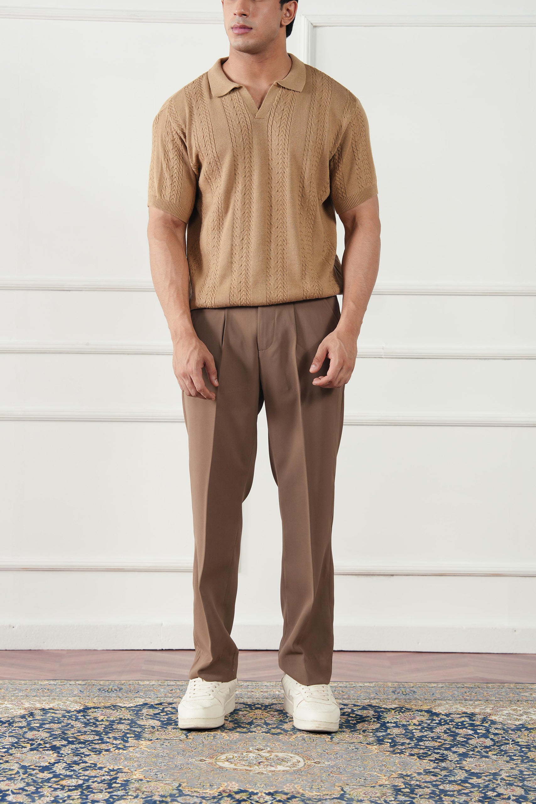 A modern expression of timeless knitwear, the Striped Knit Polo Sweater is crafted from soft cotton yarn for a refined yet comfortable feel. Defined by its textured knit pattern and clean polo collar, it brings sophistication and ease to fall and winter dressing — equally suited for relaxed evenings or elevated casual looks.
