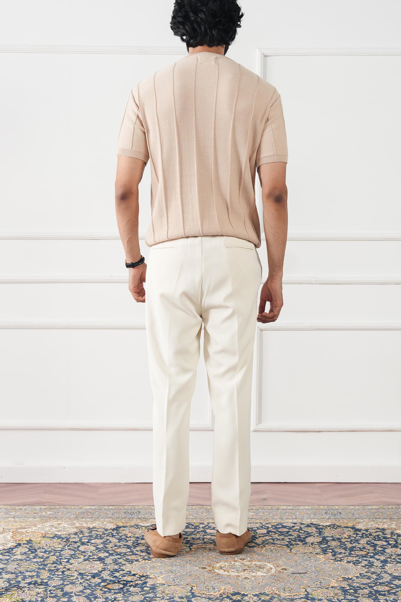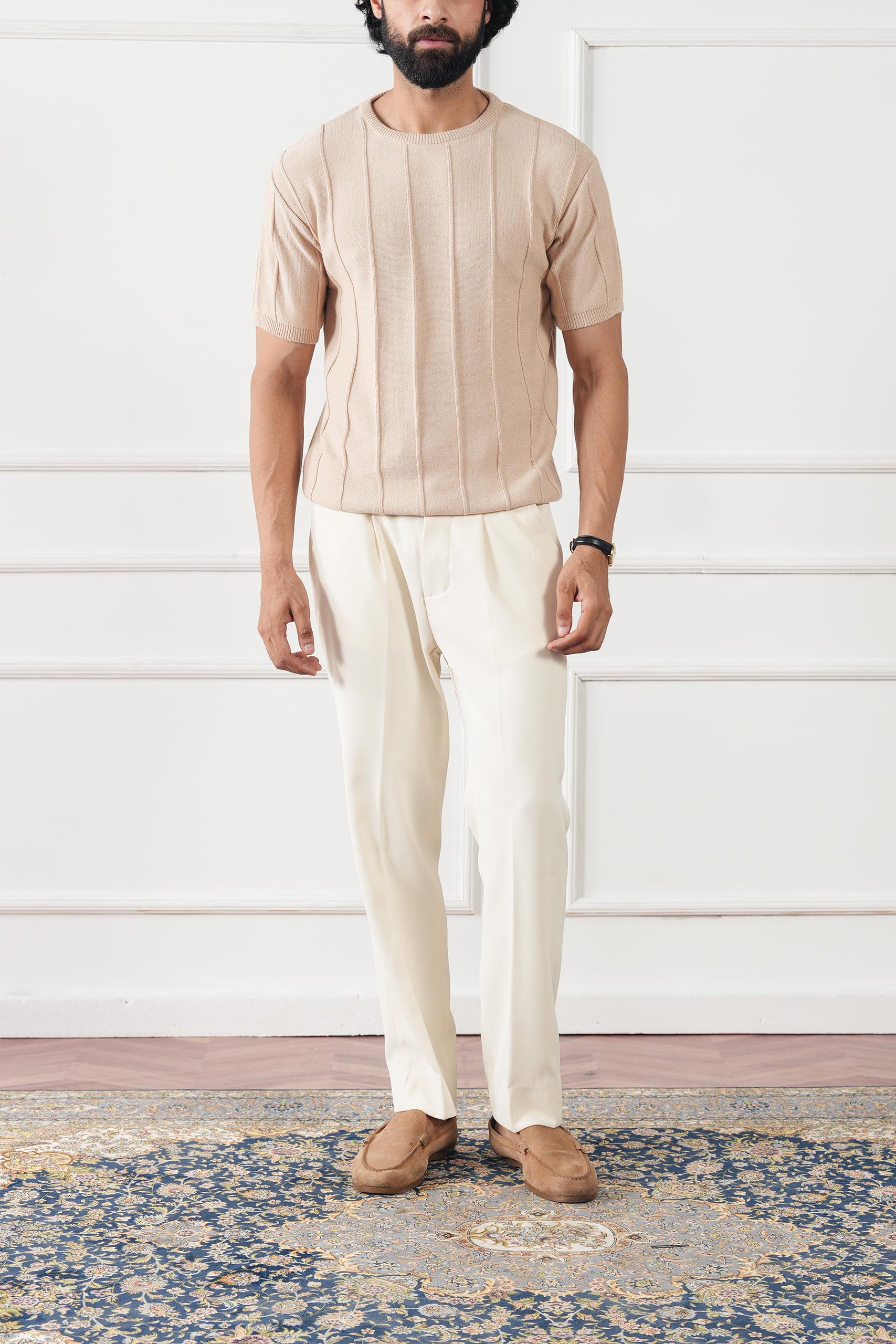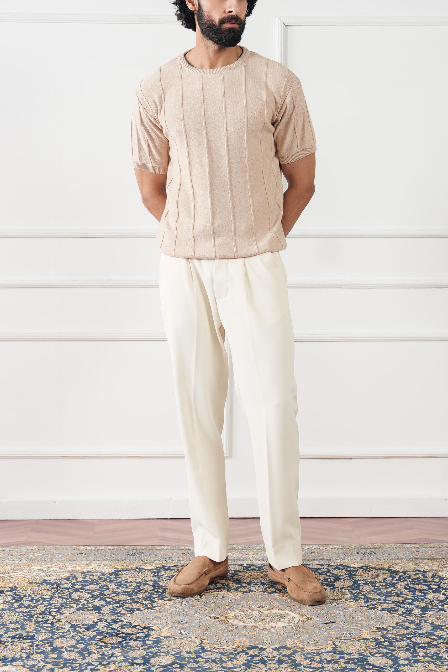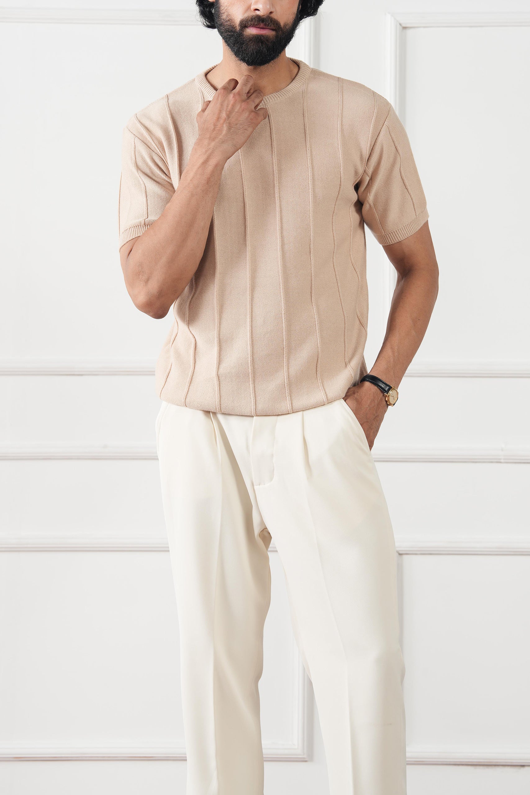 Crafted from pure cotton, the Striped Knit T-Shirt blends refined texture with effortless comfort. Designed with subtle vertical ribs that elongate the silhouette, it brings understated polish to cool-weather layering while maintaining a relaxed sensibility.