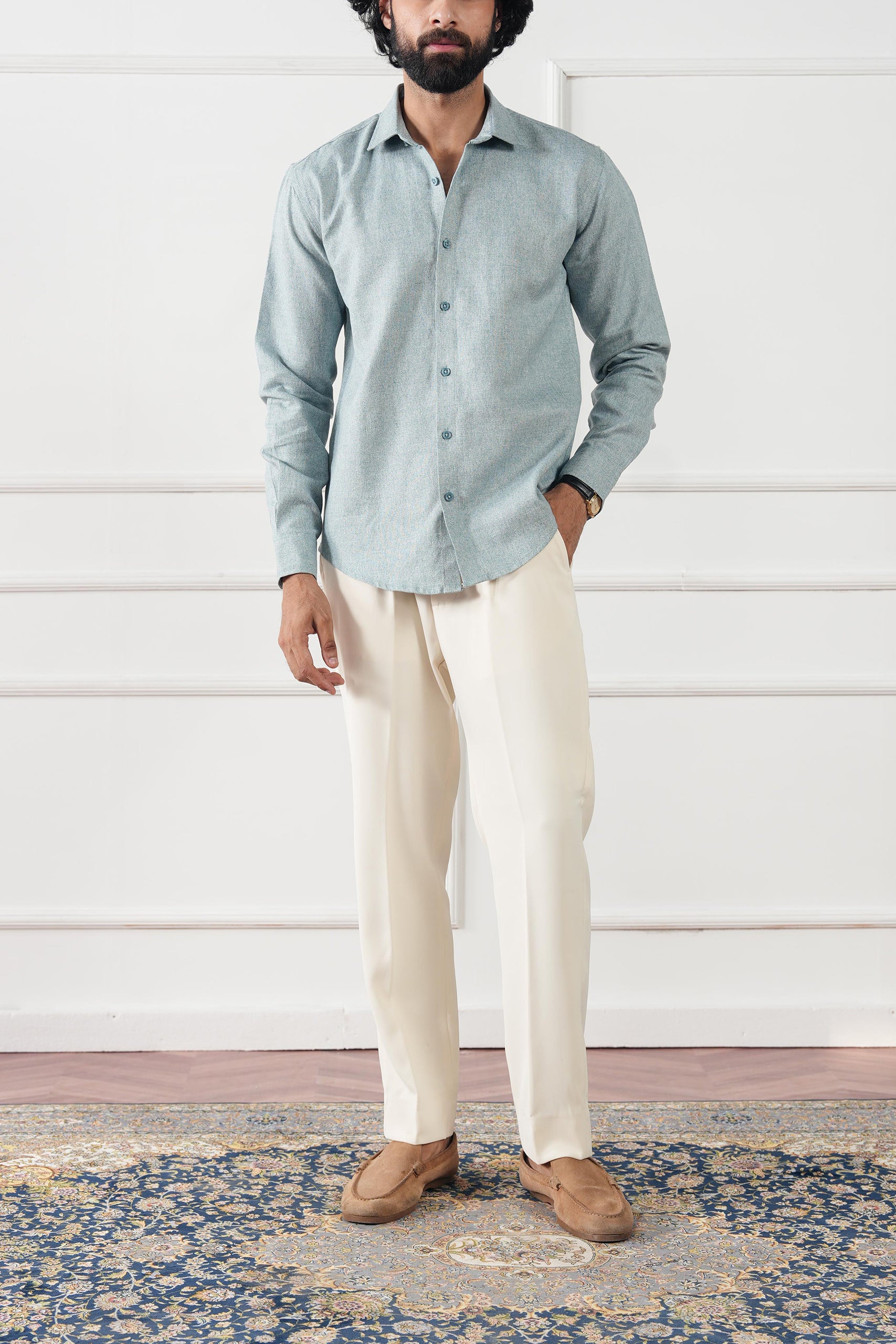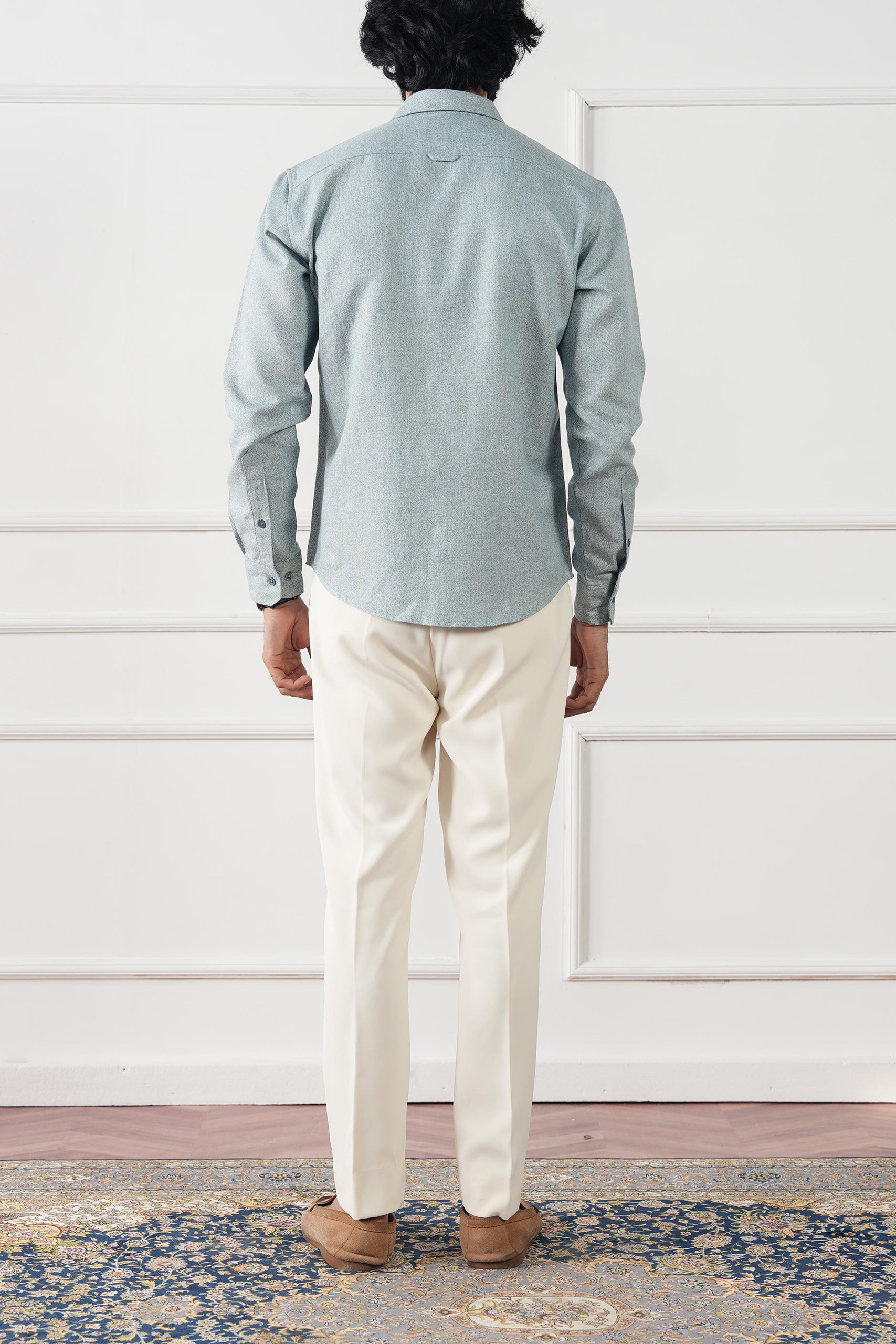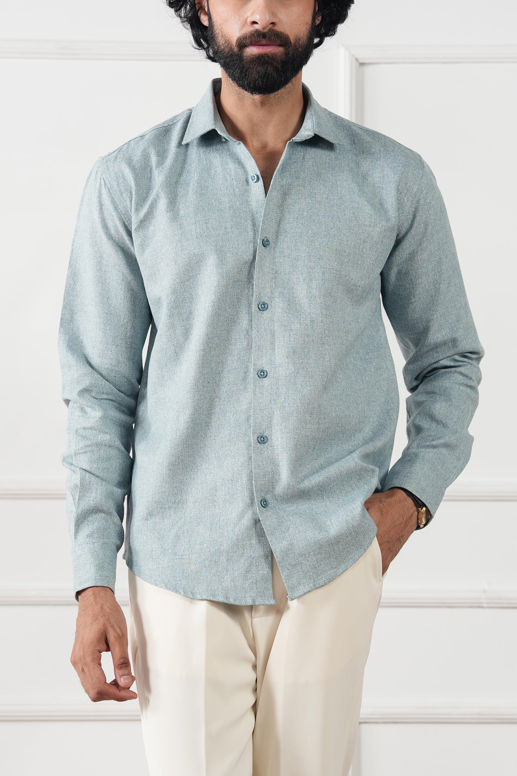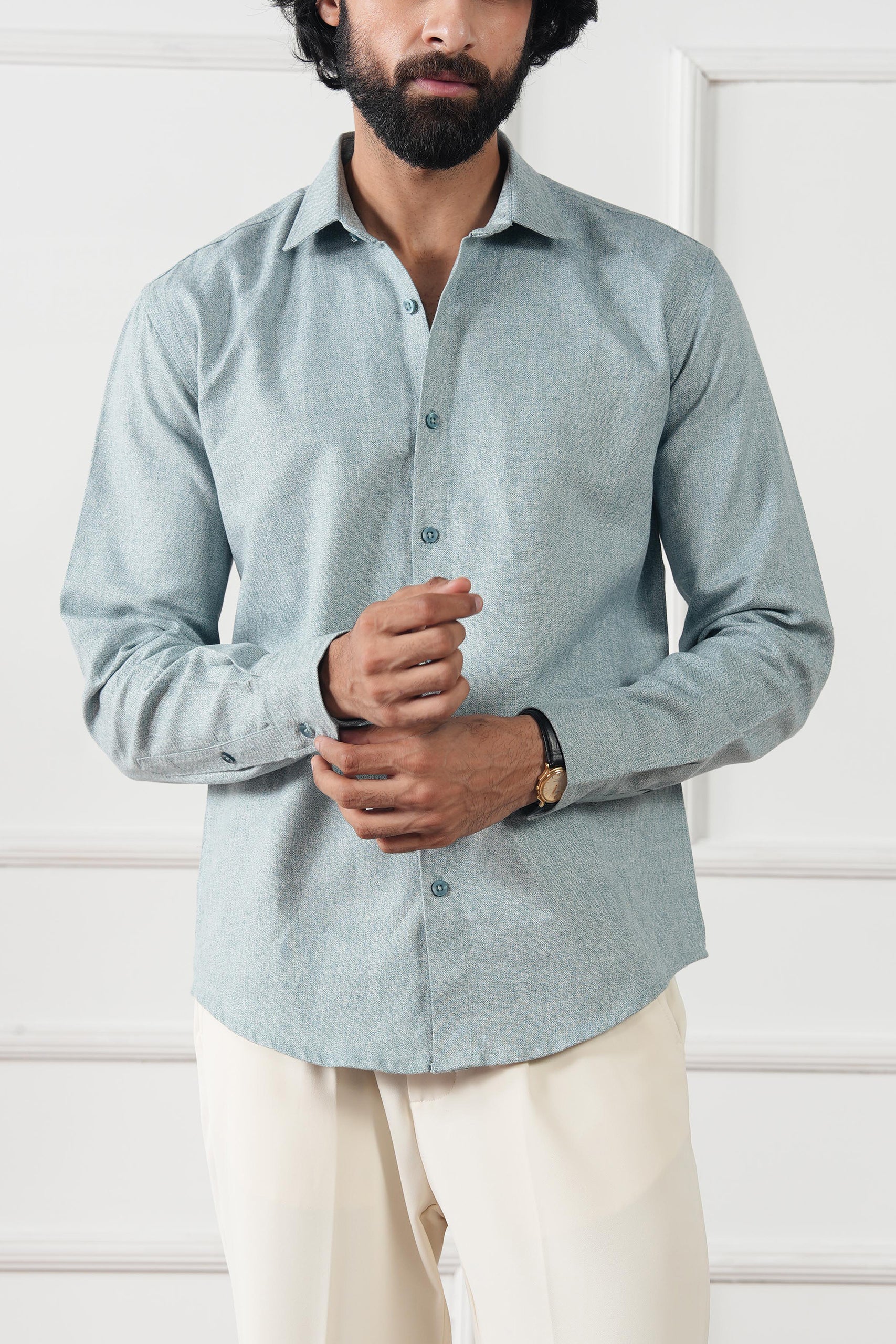 A quietly refined essential for cooler days, this long-sleeve shirt is tailored in a Regular Fit from a soft, mid-weight mixed blend that holds its shape and drapes with ease—equally at home under a blazer or worn on its own.